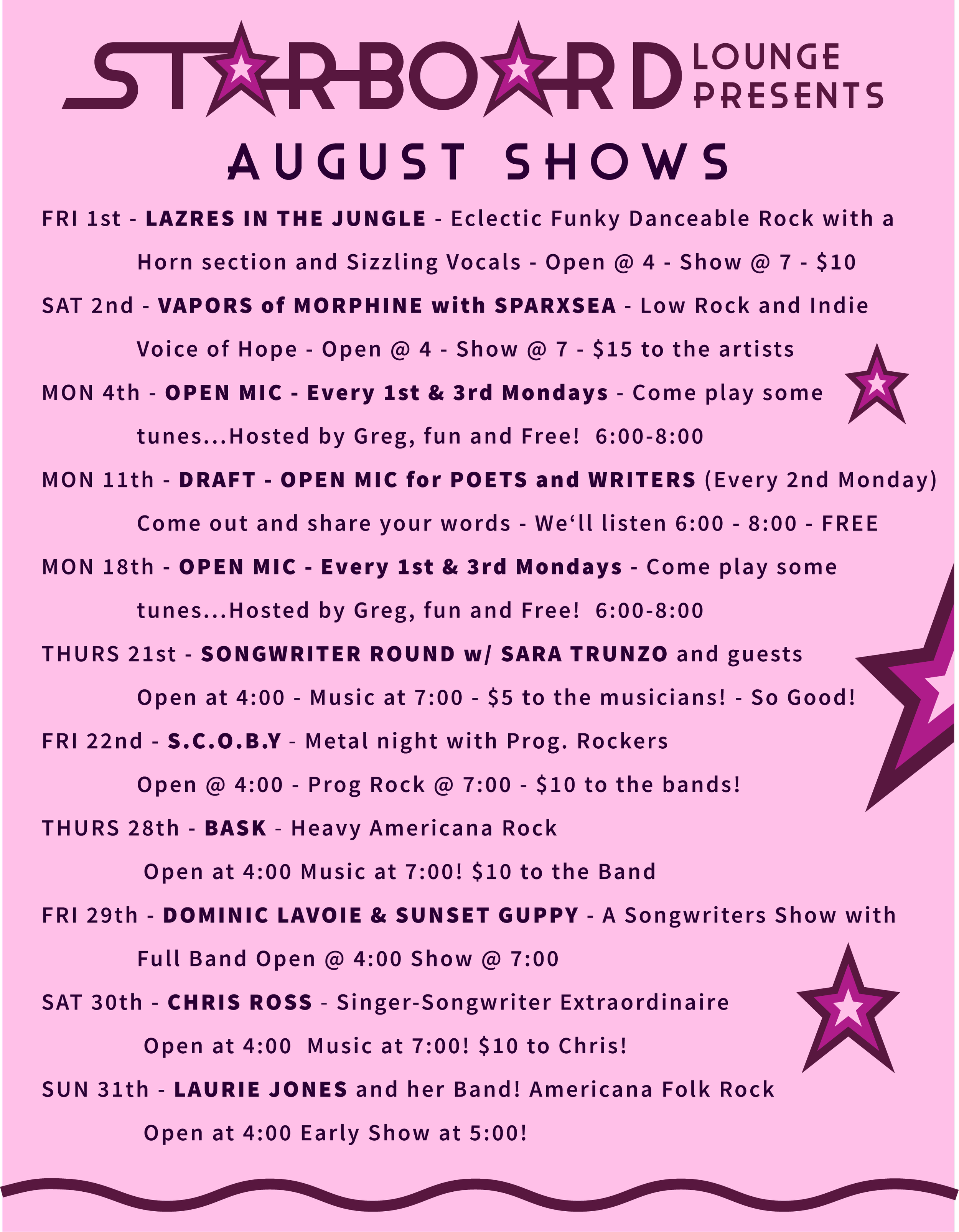 AUGUST SHOWS Friday, August 1, 2025 4:00 PM Sunday, August 31, 2025 9:00 PM Hey Sailor! 25 East Main Street Searsport, ME, 04974 United States (map) Google Calendar ICS