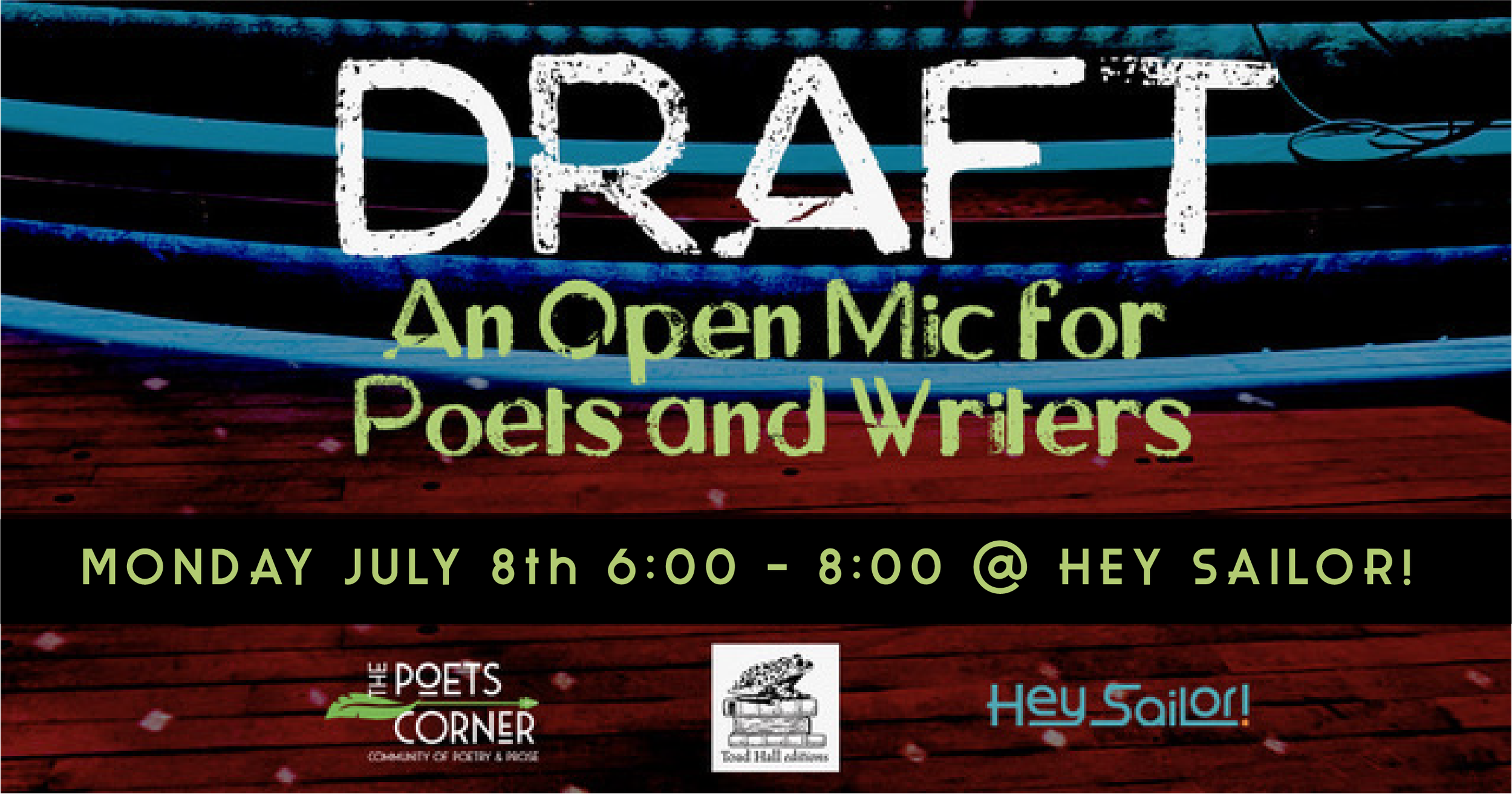 DRAFT - An Open Mic for Poets and Writers Monday, July 8, 2024 6:00 PM 8:00 PM Hey Sailor! 25 East Main Street Searsport, ME, 04974 United States (map) Google Calendar ICS