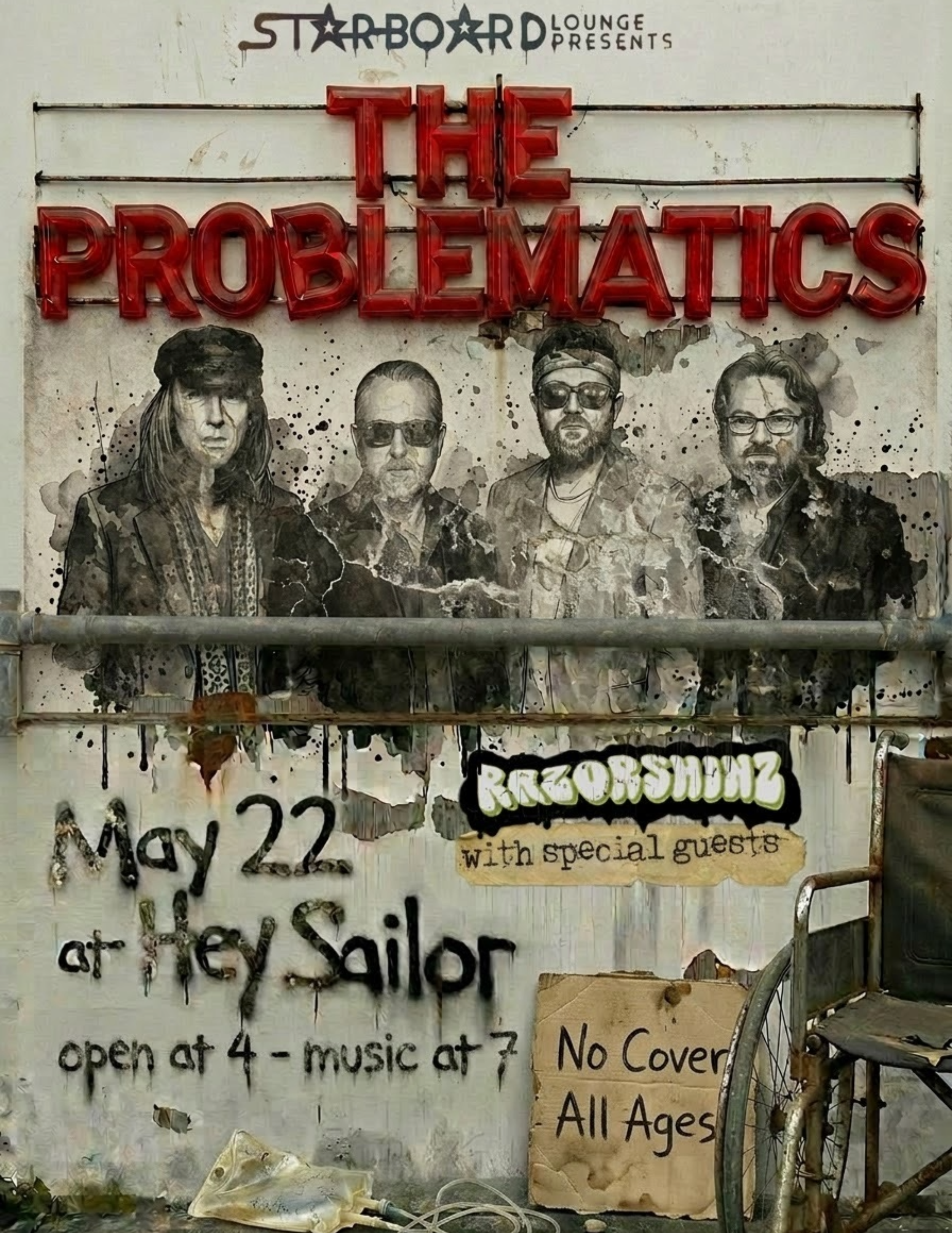 Back to All Events The Problematics wsg Razorshins Friday, May 22, 2026 7:00 PM 9:00 PM Hey Sailor! 27 East Main Street Searsport, ME, 04974 United States (map) Google Calendar ICS The Problematics The Problematics