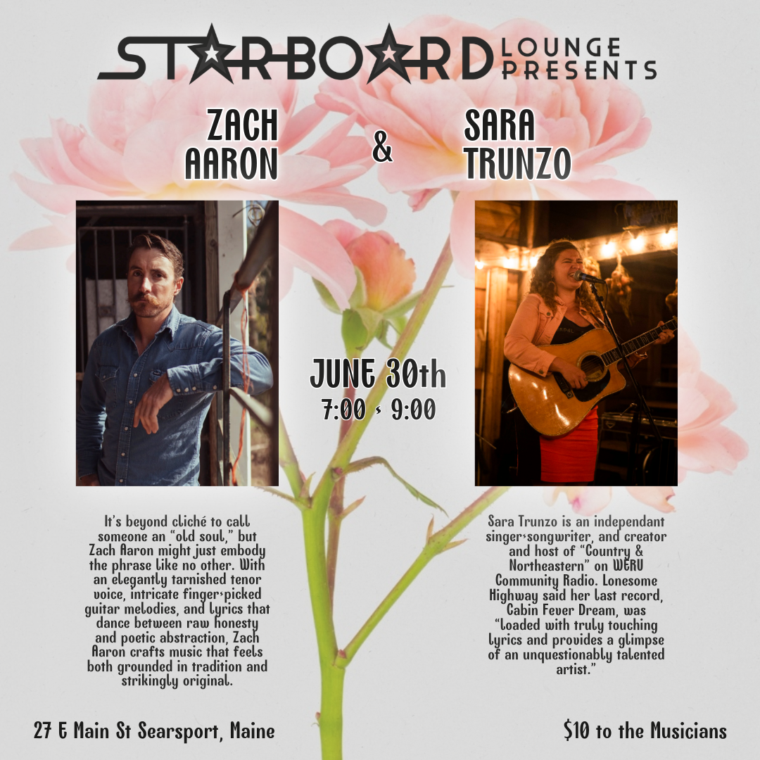 SARA TRUNZO is an independant singer-songwriter, community organizer (co-founder of Veggies For All and Waldo County Bounty), and creator and host of “Country & Northeastern” on WERU Community Radio. Lonesome Highway said her last record, Cabin Fever Dream, was “loaded with truly touching lyrics and provides a glimpse of an unquestionably talented artist.” Trunzo has collaborated with Darrell Scott and Mary Gauthier, shared stages with the likes of Suzy Bogguss and Carlene Carter, played venues such as The Bluebird, Rockwood Music Hall, and Club Passim. She has been a Joseph A. Fiore fellow, a Music to Life juried artist, and has received honors from Maine Songwriters Association, International Acoustic Music Awards, New England Songwriting Competition, and Tennessee Songwriters Week Competition.